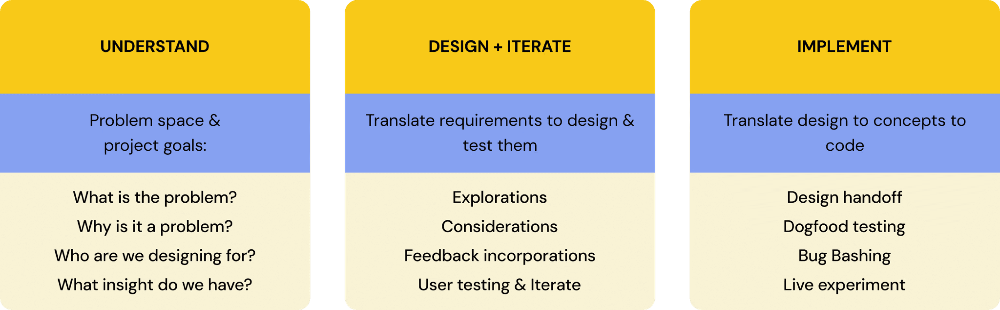 Our process involved identifying pain points, iterating on solutions through testing, and collaborating with engineering for implementation.